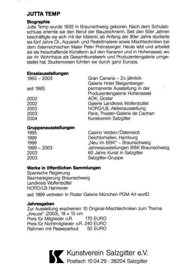Vernissage: Am 08. Februar 2004 um 11:00 Uhr im Rathaus Salzgitter Lebenstedt.
